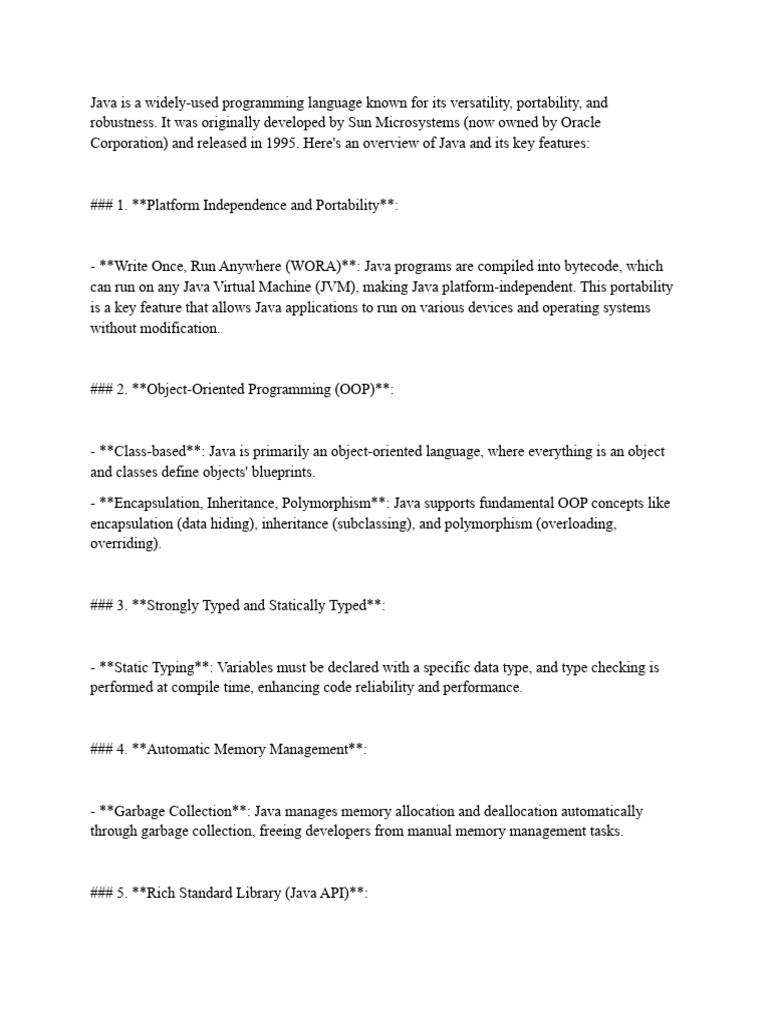 Corporation) and released in 1995. Here's an overview of Java and its key features: