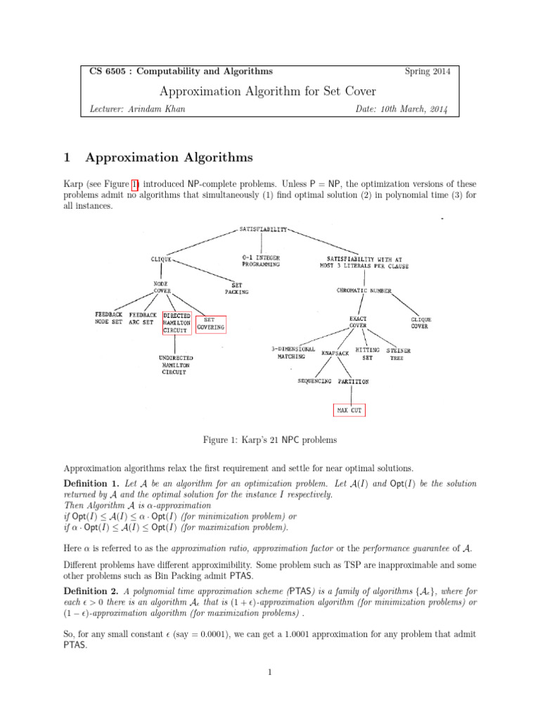 • Set Cover is a problem whose study has led to the development of fundamental techniques for the entire