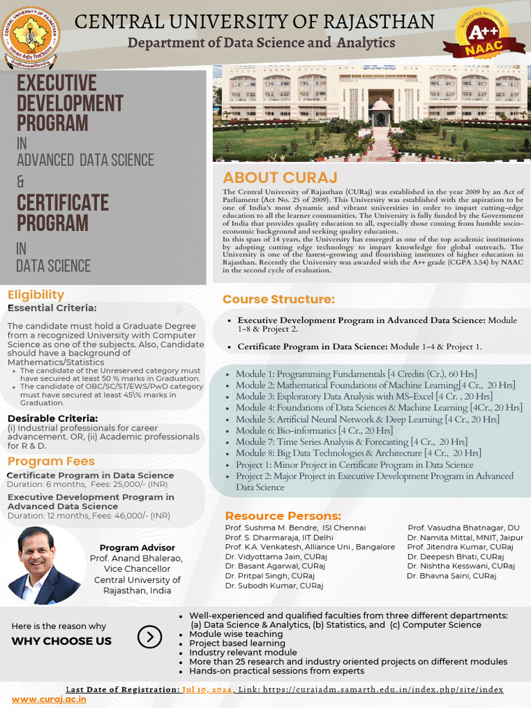 Program Advisor Prof. K.A. Venkatesh, Alliance Uni., Bangalore Prof. Jitendra Kumar, CURaj