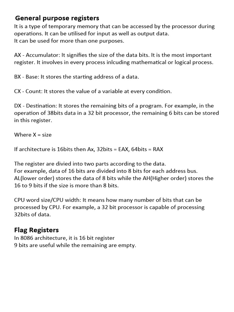 AX - Accumulator: It signifies the size of the data bits. It is the most important