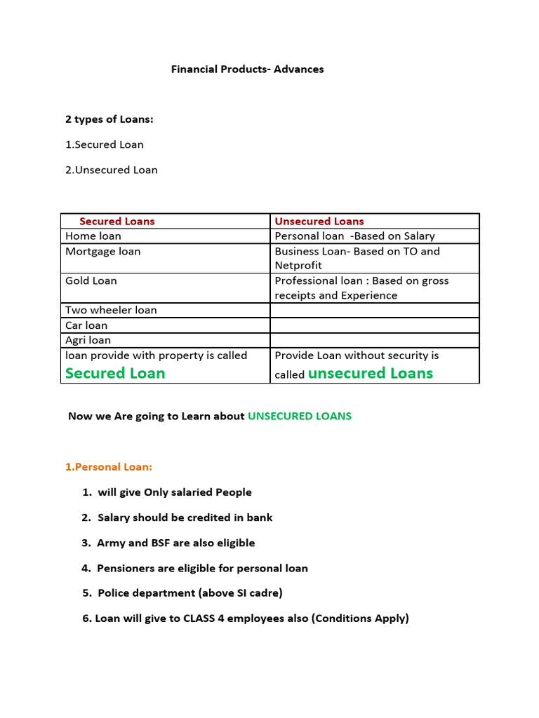 Secured Loans Unsecured Loans