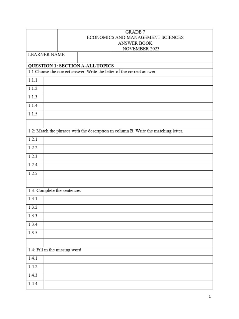 QUESTION 1: SECTION A-ALL TOPICS