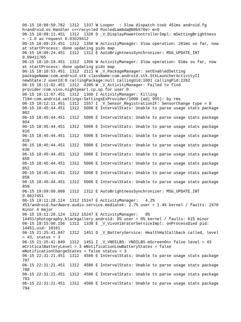 06-15 [Link].451 1312 4586 E IntervalStats: Unable to parse usage stats package