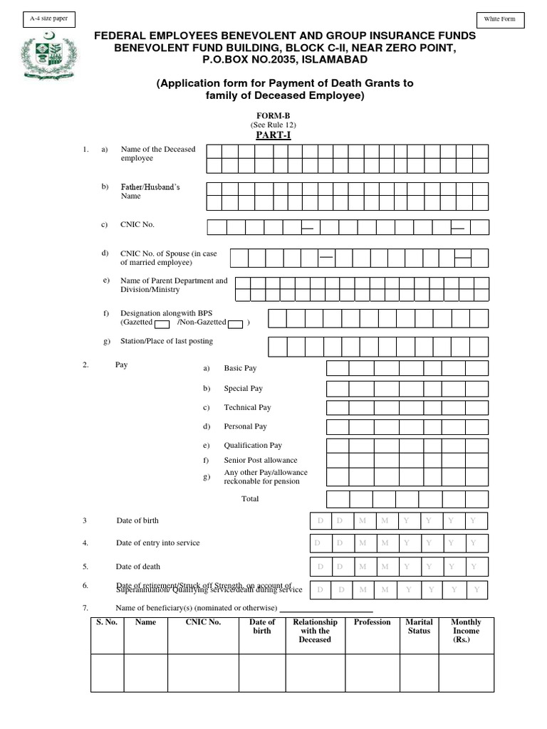 (Application form for Payment of Death Grants to