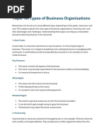 Types of Business Organizations: