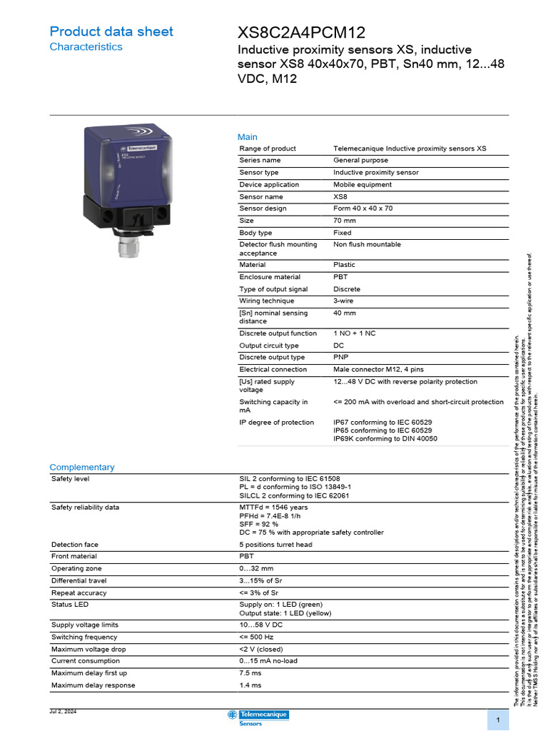 Product data sheet XS8C2A4PCM12