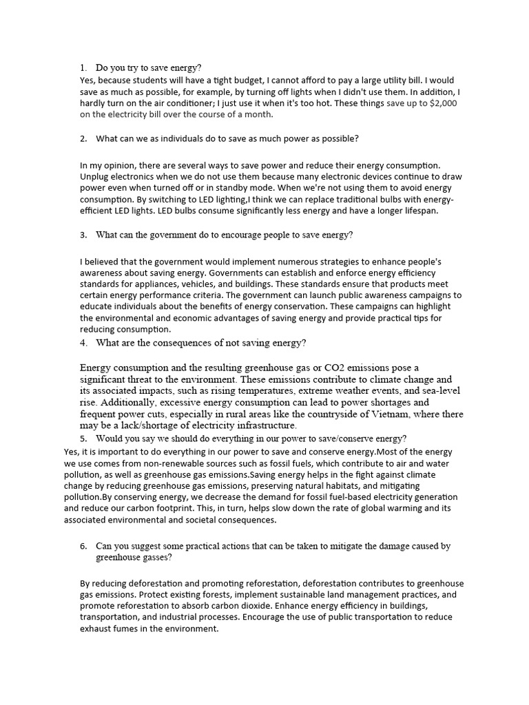 5. Would you say we should do everything in our power to save/conserve energy?