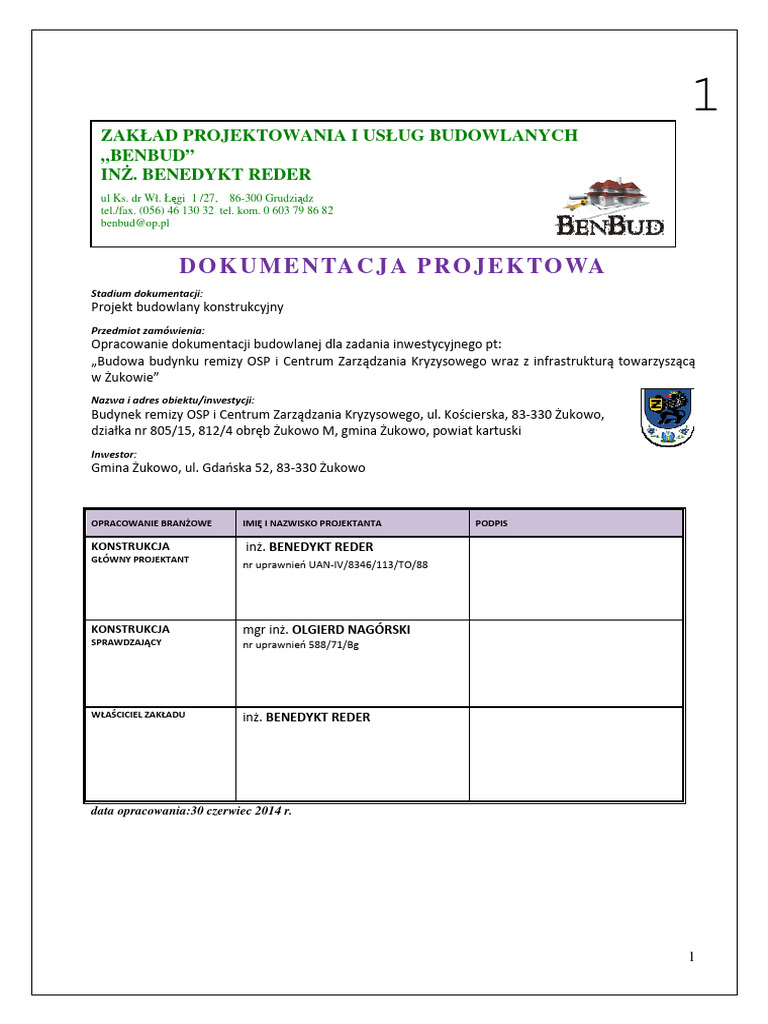 Dokumentacja Projektowa: Zakład Projektowania I Usług Budowlanych Benbud" Inż. Benedykt Reder