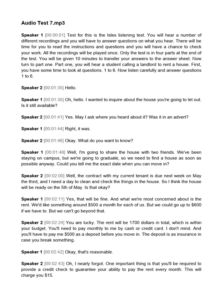 Speaker 1 [00:00:01] Test for this is the Isles listening test. You will hear a number of