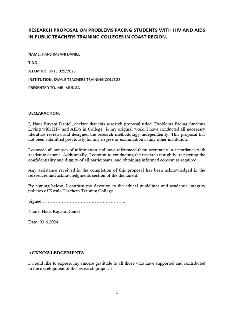 I, Hans Rayani Daniel, declare that this research proposal titled "Problems Facing Students