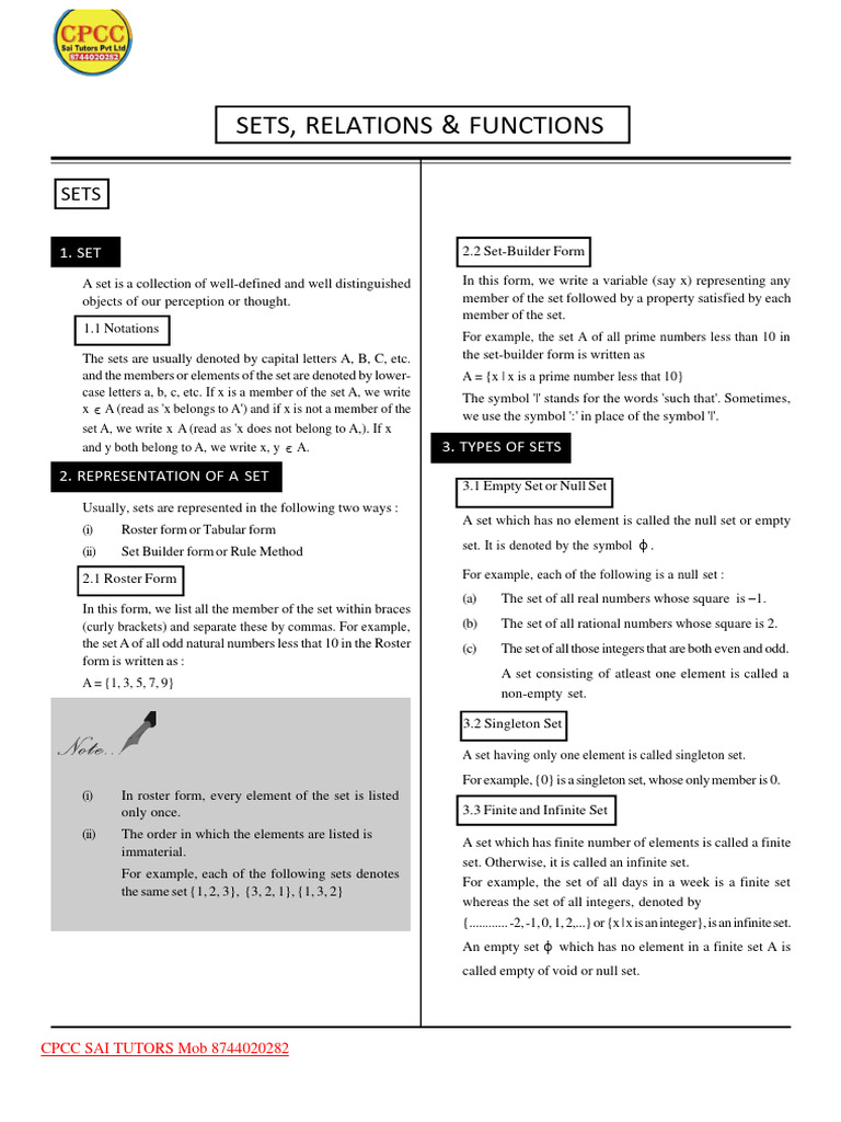 Sets Class 11 Notes CBSE Maths Chapter 1 (PDF)
