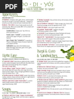 salad, chicken pasta salad, Greek village salad, spicy cheese, sliced cucumber & tomato, roasted peppers, on a bed of mixed greens with a side of lemon oil dressing 11.95