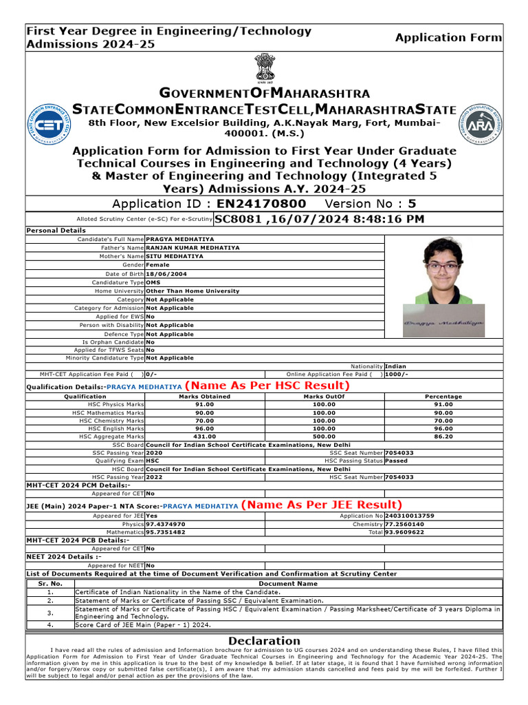 Last Modified On : 16/07/2024 8:47:16 PM Signature of Applicant