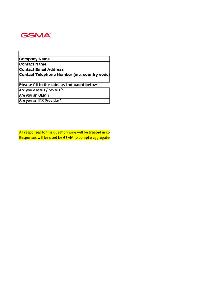 All responses to this questionnaire will be treated in confidence between GSMA and the responding company only, GSMA