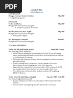 Developed and taught daily lessons in two 12th grade Composition and Literature classes o Created and implemented units on College Writing, Poetry, Macbeth and Beowulf o Integrated weekly vocabulary lists as well as continual peer writing workshops Developed and taught daily lessons in two 9th grade Honors Composition and Literature classes o Created and implemented units on Of Mice and Men and Animal Farm Maintained a classroom blog and website for each class to increase access to student learning