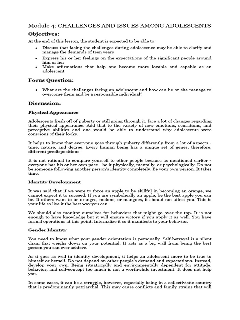 Module 4: CHALLENGES AND ISSUES AMONG ADOLESCENTS