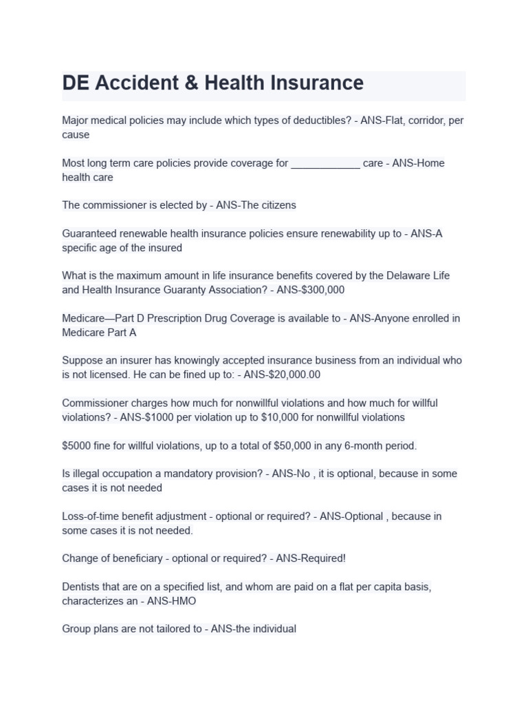 DE Accident & Health Insurance