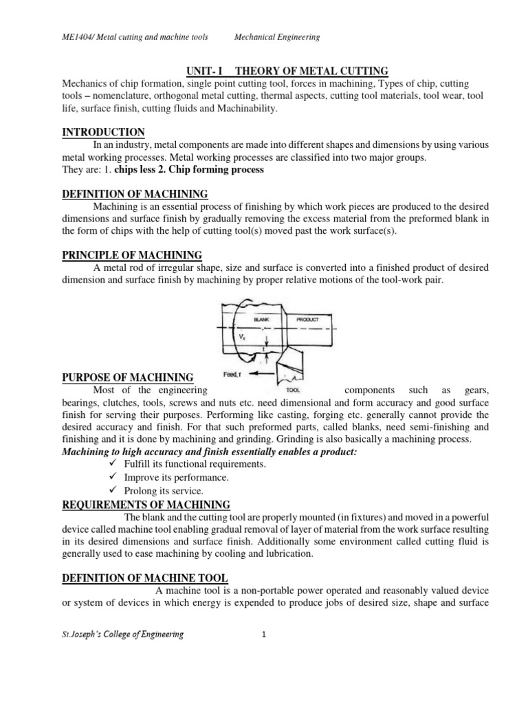 ME1404/ Metal cutting and machine tools Mechanical Engineering