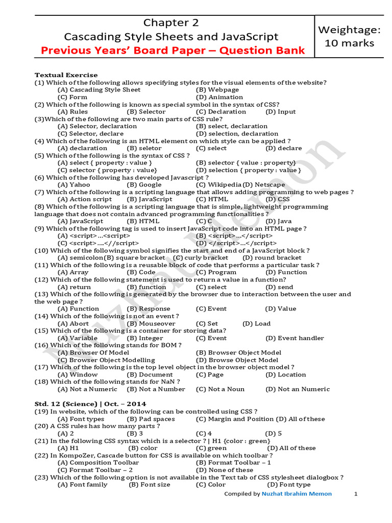 Previous Years’ Board Paper – Question Bank