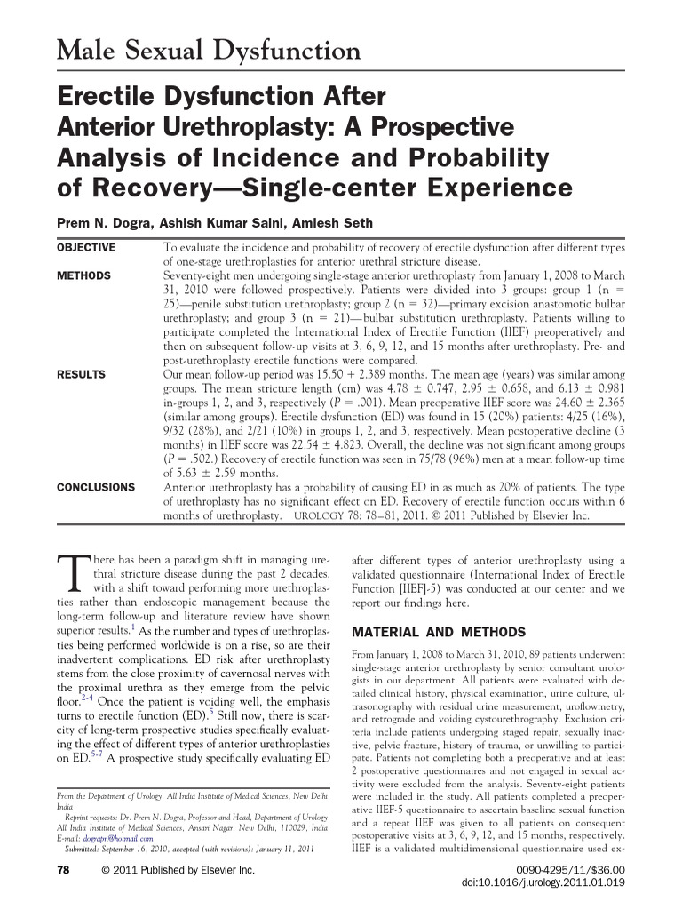 Overall, the age and length of stricture were not found to tution urethroplasty), only mild to moderate ED was seen