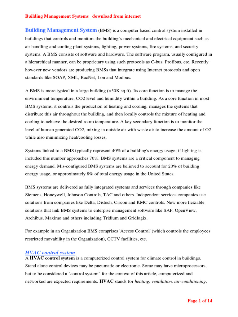 BMS systems, it controls the production of heating and cooling, manages the systems that