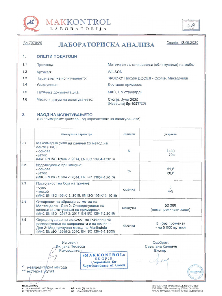 1.3 Test ordered by: "FOKUS" Nikole DOOEL - Skopje, Macedonia
