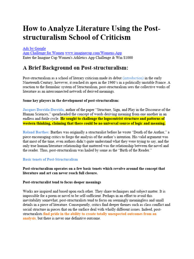 Post-Structuralism for Lit Critics