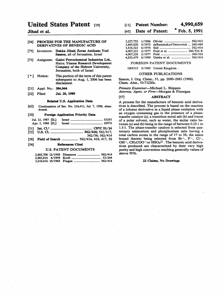 (75) Inventors: Dakka Jihad; Zoran Amikam; Yoel 4,007,223 2/1977 Feld et al. ....................... 260/524 R