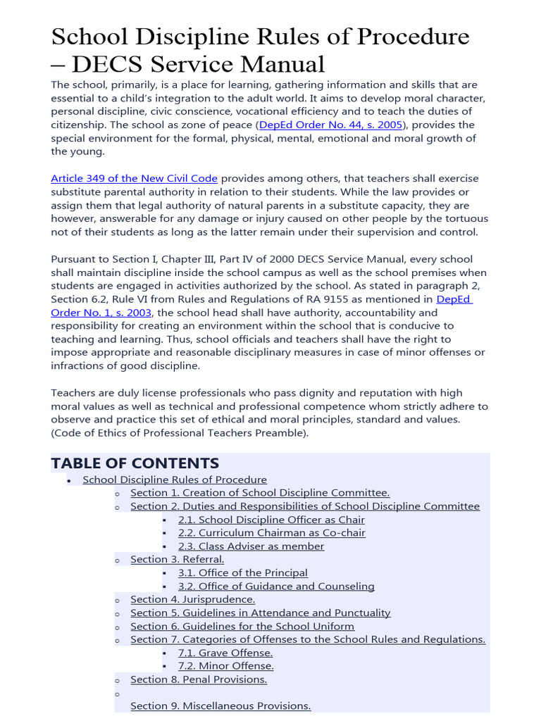 o Section 2. Duties and Responsibilities of School Discipline Committee
