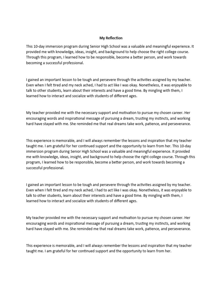immersion program during Senior High School was a valuable and meaningful experience. It provided