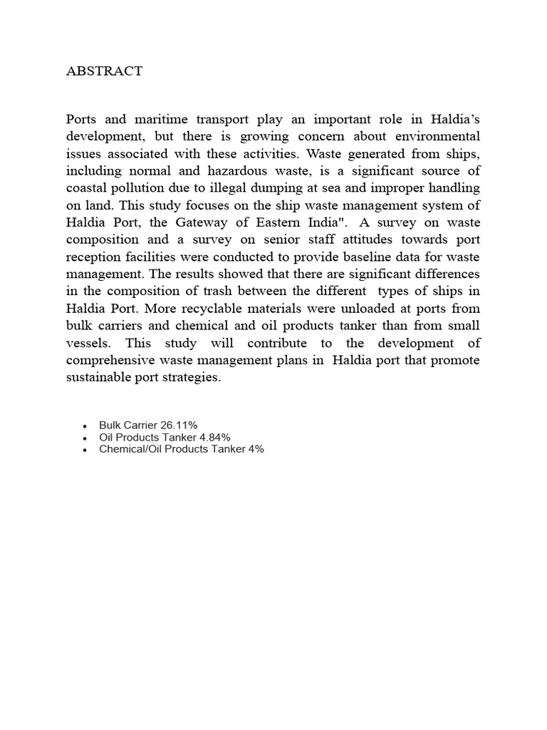 Haldia Port, the Gateway of Eastern India". A survey on waste