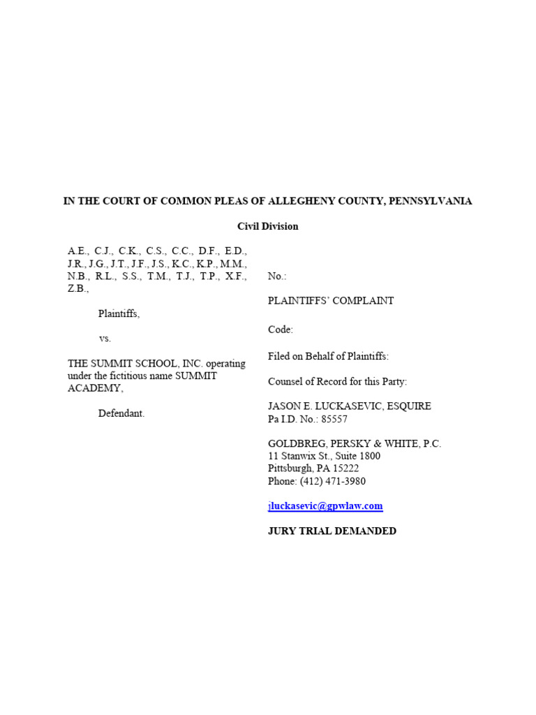 FINAL - Summit Academy Complaint - Institutional Sex Assault