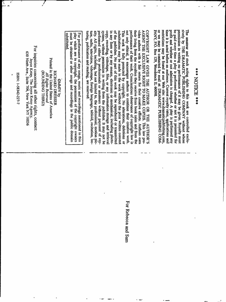 - Rounding Third Introduction: Contains copyright and publishing information for the play "Rounding Third" by Richard Dresser.