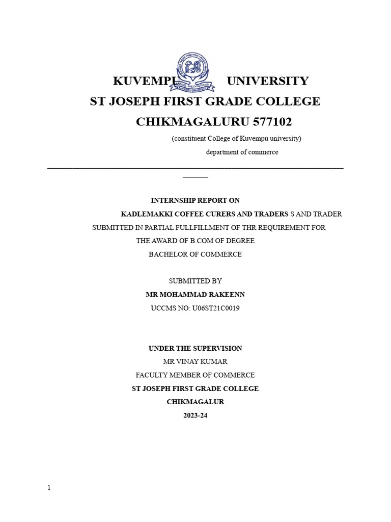 This is to certified that this internship report om entitled “KADLEMAKKI COFEE CURERS AND