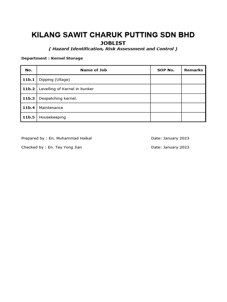 Department:Kernel Storage Section: Kernel Bunker SOP No.: SOP Activity: Ullage (Dipping) SOP Date: