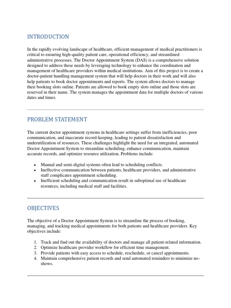 administrative processes. The Doctor Appointment System (DAS) is a comprehensive solution