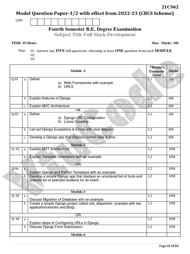 Model Question Paper-1/2 with effect from 2022-23 (CBCS Scheme)