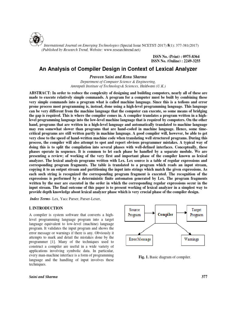 An Analysis of Compiler Design in Context of Lexical Analyzer