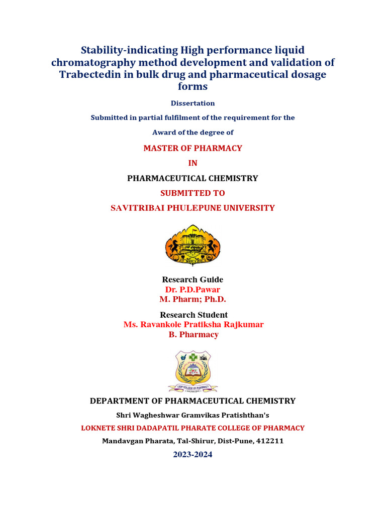 65. Bhinge, Somnath D., Sharangouda M. Malipatil, and Lalit V. Sonawane. "Bioanalytical