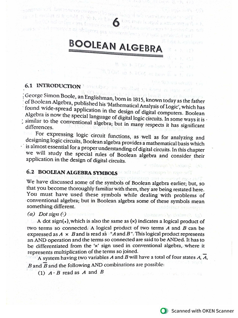 6.2 BOOLEAN ALGEBRA SYMBOLS