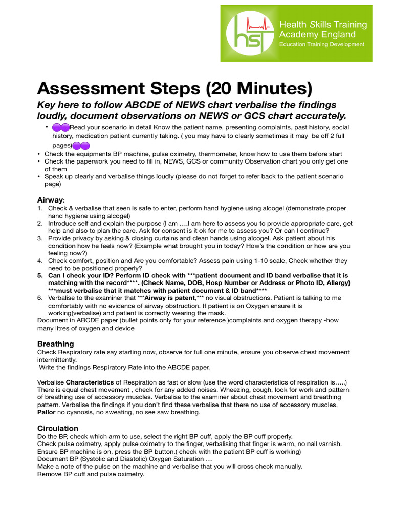 Key here to follow ABCDE of NEWS chart verbalise the ndings