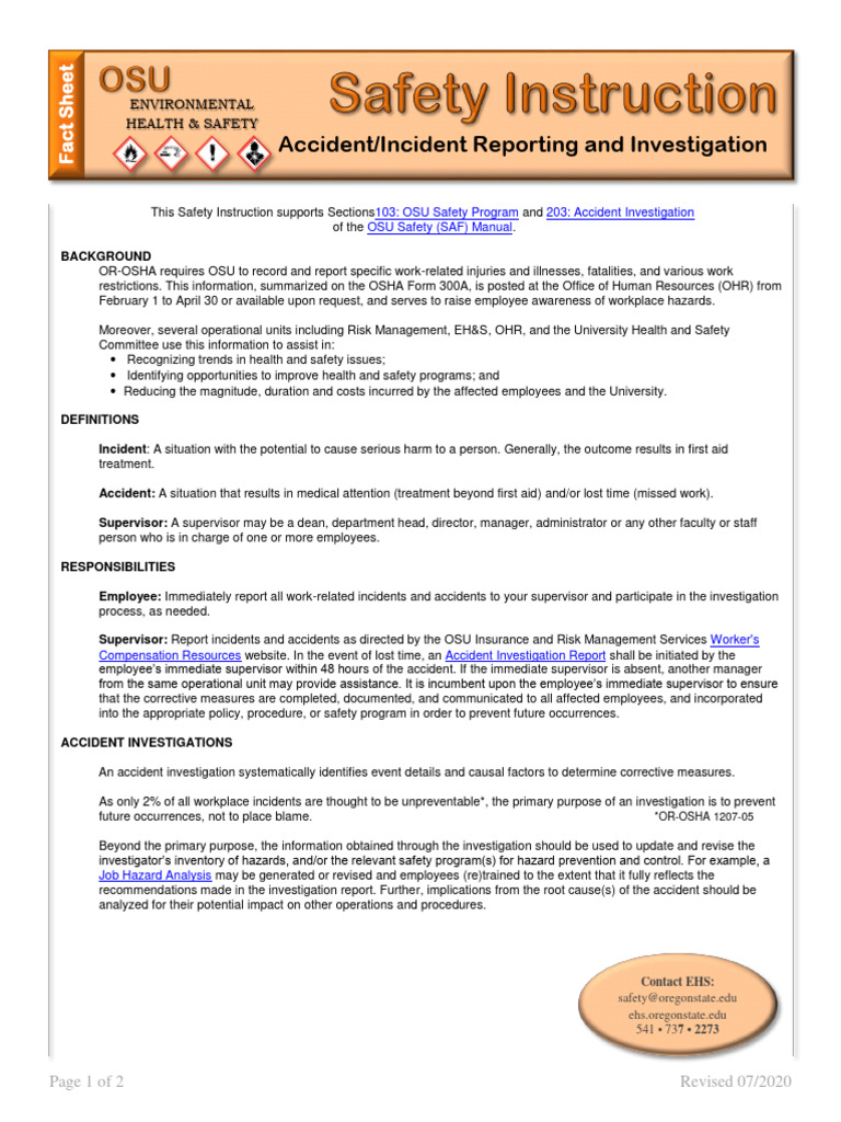 This Safety Instruction supports Sections103: OSU Safety Program and 203: Accident Investigation