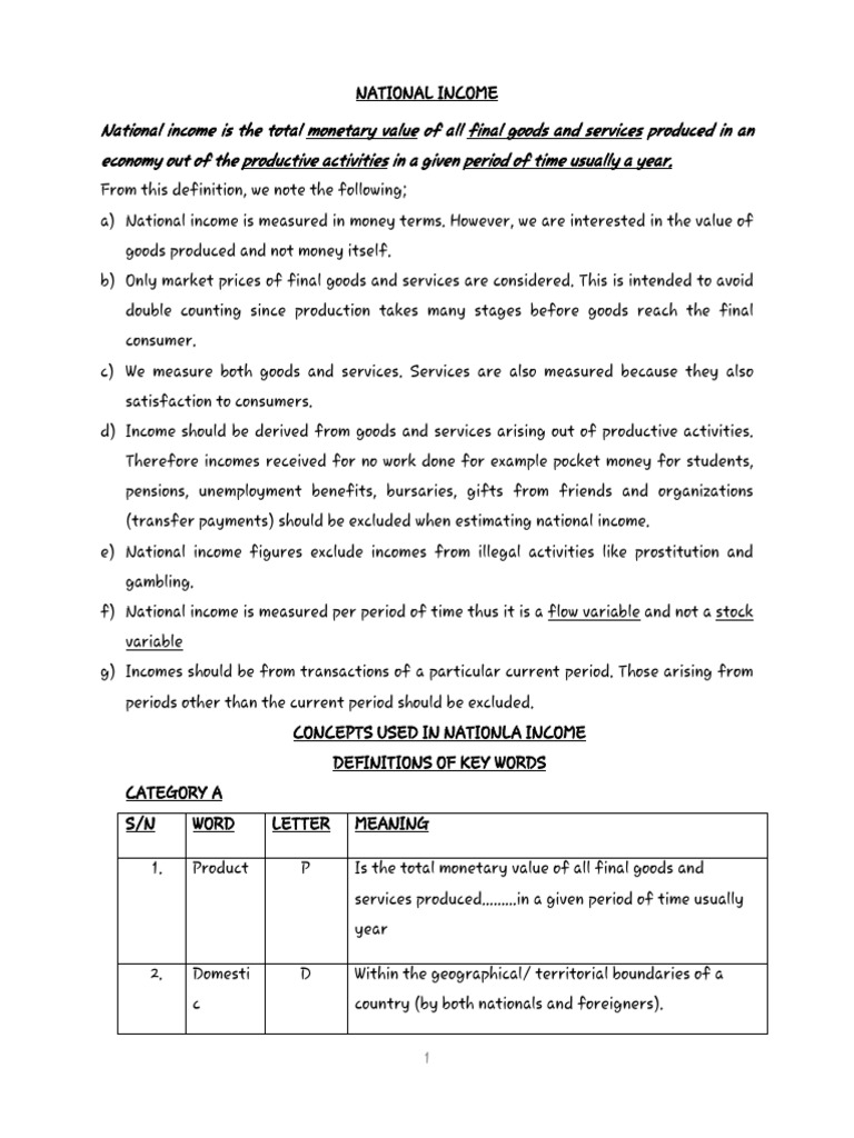 f) National income is measured per period of time thus it is a flow variable and not a stock