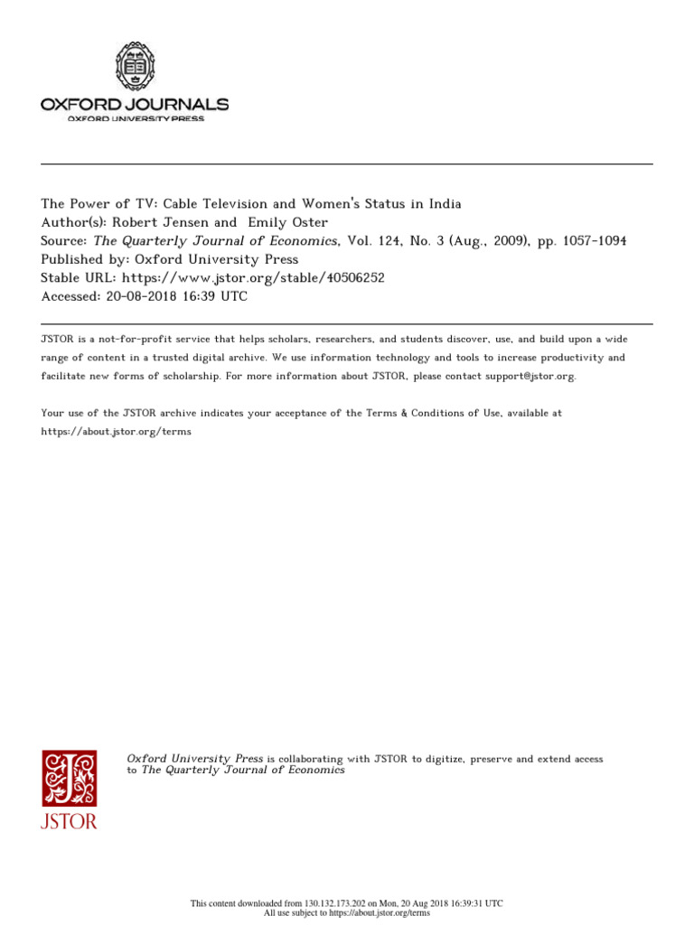 Source: The Quarterly Journal of Economics, Vol. 124, No. 3 (Aug., 2009), pp. 1057-1094