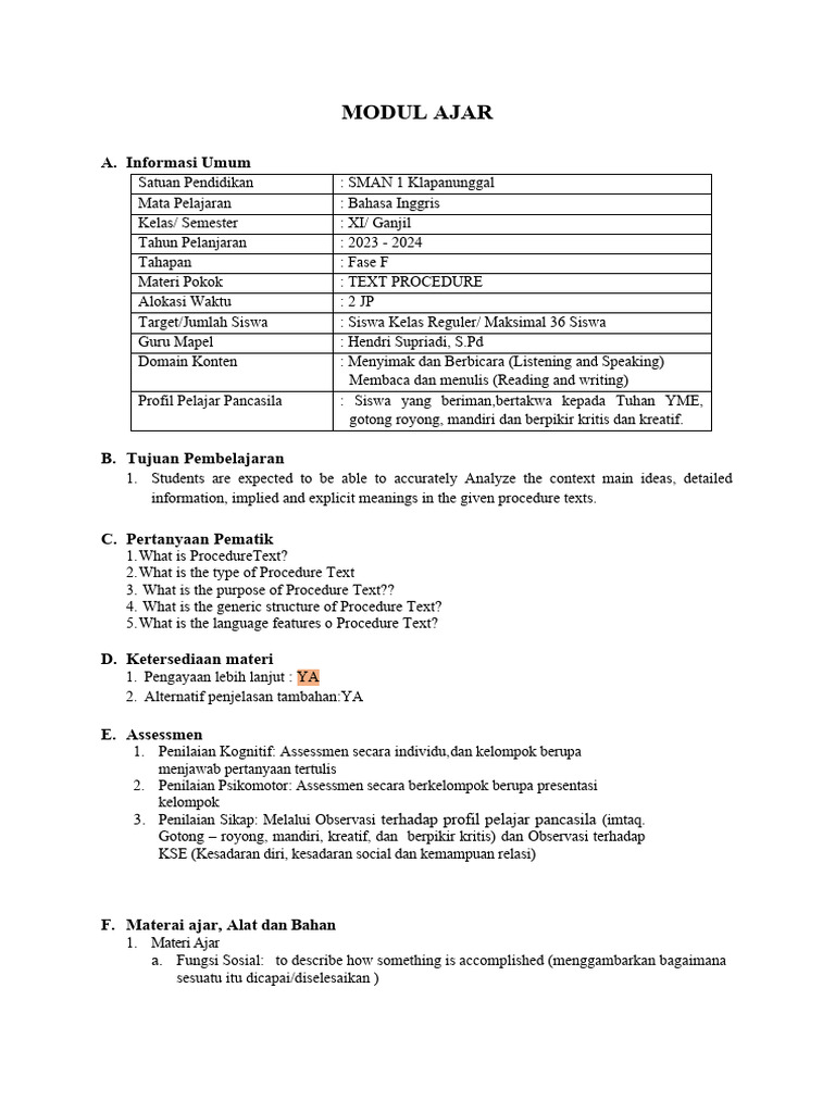 a. Modul Pembelajaran Bahasa Inggris Kelas XI SMA. 2023. Jakarta: Kemdikbud