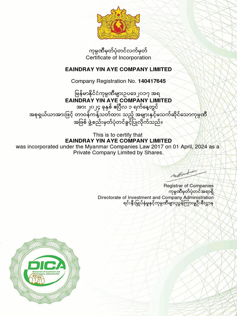 was incorporated under the Myanmar Companies Law 2017 on 01 April, 2024 as a