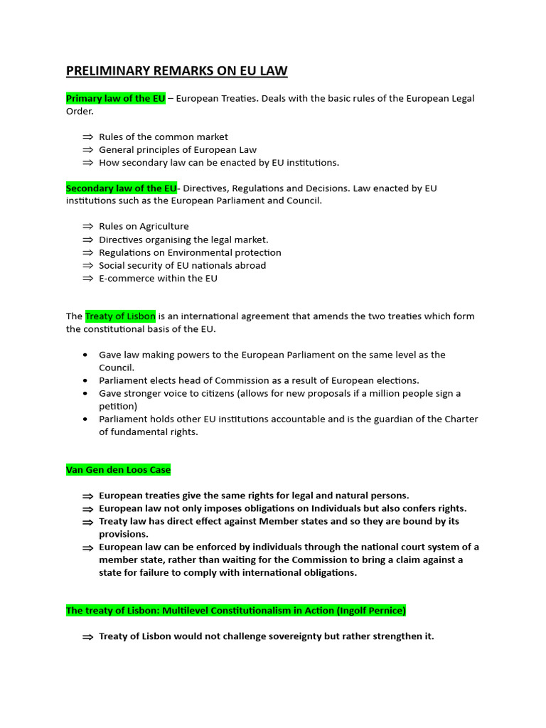 Primary law of the EU – European Treaties. Deals with the basic rules of the European Legal