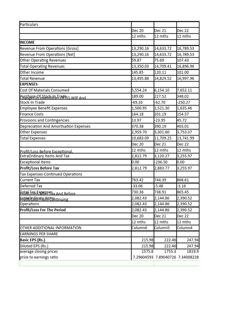 Profit/Loss Before Exceptional, 12 mths 12 mths 12 mths