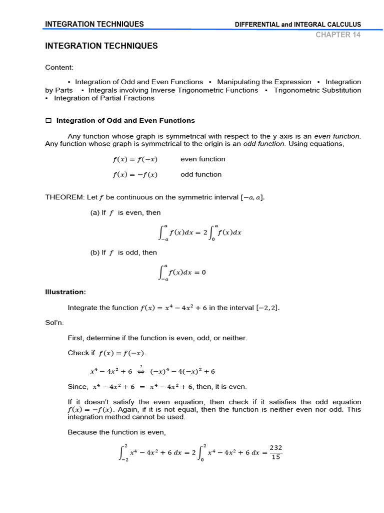 INTEGRATION TECHNIQUES DIFFERENTIAL and INTEGRAL CALCULUS