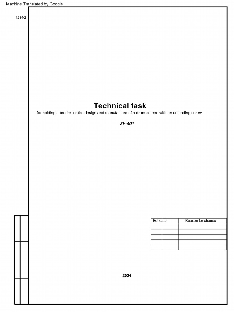 5. Scope of work performed Selection and production of a drum sieve with an unloading screw